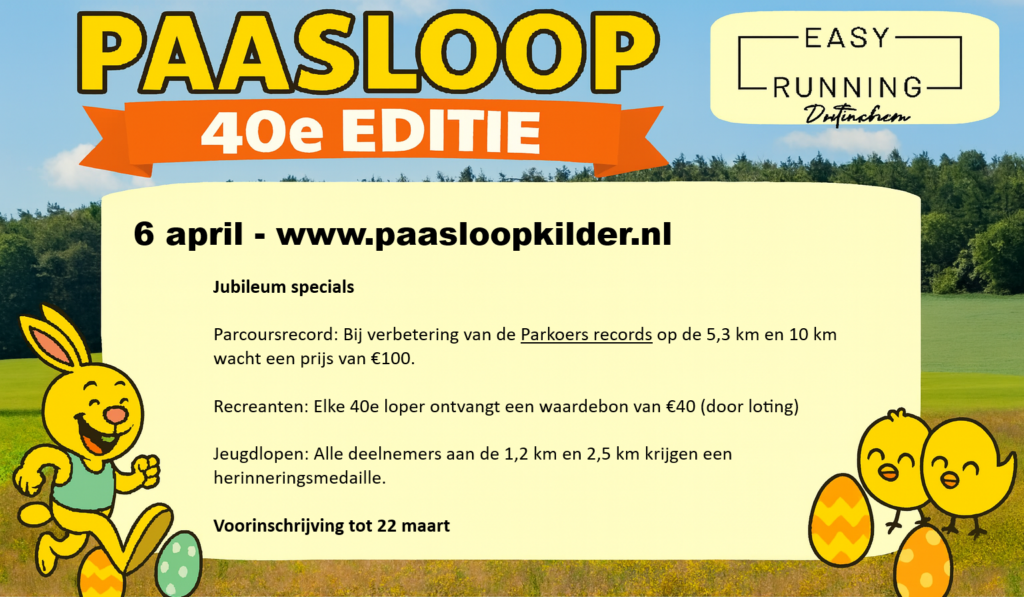 Inschrijving 40e paasloop 6 april 2026 : Aanmelden